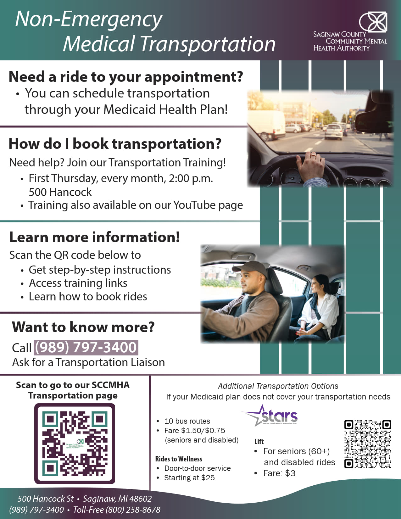 Saginaw Transit Authority Regional Services (STARS) also offers assistance with medical transportation:
